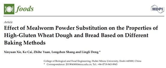 本网讯(通讯员 王智勇 王智勇/文 邓伶俐/图)近日,生物与食品工程学院汪兴平教授食品科学团队邓伶俐博士以开云电竞官方网站入口作为第一单位在《Foods》上发表论文“Effect of Mealworm Powder Substitution on the Properties of High-Gluten Wheat Dough and Bread Based on Different Baking Methods”。该期刊可在Scopus、SCIE(Web of Science)、PubMed等数据库中索引,其为JCR-Q1(Food Science & Technology)/CiteScore-Q1(Health Professions)期刊。5年影响因子为5.5。该研究得到了国家自然科学基金(批准号:32160610)的资助。