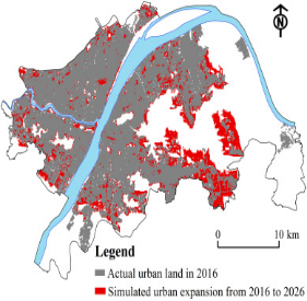 Fig. 4. Bargaining results Fig. 5. Urban land simulation results in Wuhan for 2026.