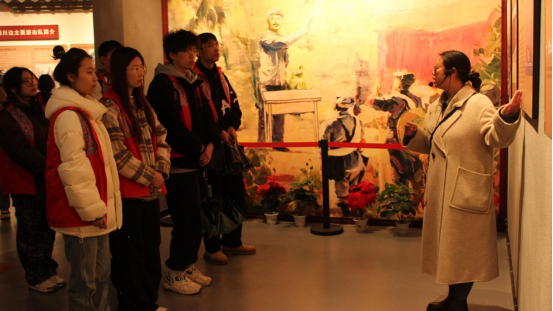 随后,在讲解员的带领下,全体师生集体参观湘鄂川黔革命根据地咸丰纪念馆,了解龙潭司特委举义旗、贺龙黑洞收神兵、红军转战湘鄂西、大村会议开辟新路、湘鄂川黔星火燎原等历史。