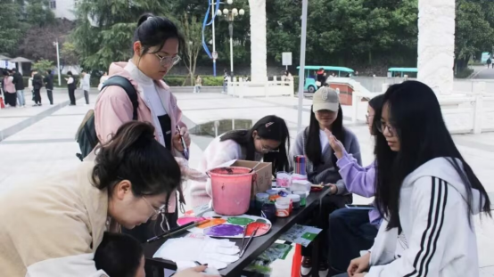在“手”护希望环节,广场上的展板格外醒目。同学们纷纷来到展板前,庄重地按下自己的手印。这些手印色彩斑斓,它们代表着每一个人的爱心,手印汇聚在一起,形成一幅充满力量的画卷,仿佛在向乡村儿童传递着大家的支持与鼓励,让他们感受到有无数的力量在背后为他们加油。