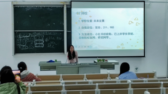 陈洁同学研究生报考专业是生物与医药,她以346分的成绩考入了湖北大学,开启了新的学术之旅。她从考研择校、初试备考、复试准备等方面进行分享。她提醒大家要控制自己的情绪,保持平稳的心态。同时还强调,高效学习是最重要的。在互动环节,她耐心解答同学的疑问,为大家提供宝贵建议。
