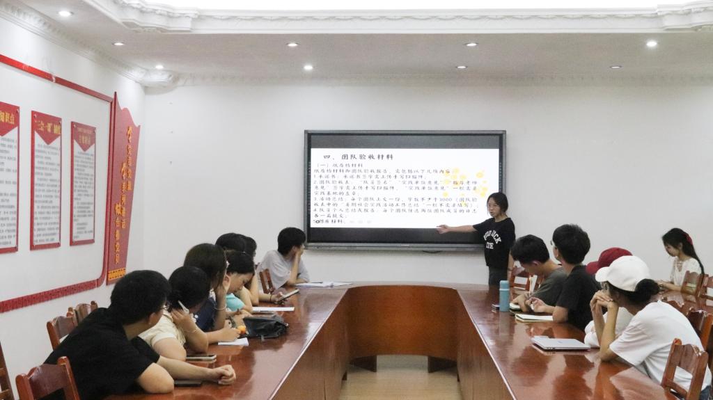 会议伊始,刘宇阳就个人职责及注意事项、突发事件应急预案以及团队验收材料进行说明。她讲解了团队验收材料的纸质档和电子档需要注意的一些事项,比如每日日志及图片、实践后期所需要上交的验收报告以及最后的团队验收时的要求。她着重强调了暑期社会实践的安全问题,确保在保障个人人身安全的前提下,各团队成员协力合作,共同完成此次社会暑期实践活动。