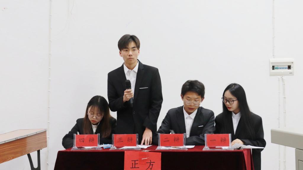 本次比赛正反双方紧紧围绕“讲好中国故事,更应该侧重于讲伟人的故事还是凡人的故事”的辩题展开激烈辩论,我院为正方,化学与环境工程学院为反方。在正、反方进行简洁明了的自我介绍后,比赛进入开篇立论环节,正方一辩以“侧重于讲伟人故事更能给人以信念支持”和“伟人更值得学习”为切入点立论,反方则以“伟人不能代表所有人”和“平凡人的故事更能展现现代社会的发展”来论证己方观点。在随后的攻辩环节中,双方更是针锋相对、步步紧逼,现场气氛迅速升温。紧接着,辩论赛进入自由辩论环节,双方强强相对,据理力争,向观众展现了一场高水平对决。继观众提问后比赛进入总结陈词环节,双方辩手分别指出对方漏洞进而强调己方观点,赢得现场掌声阵阵。