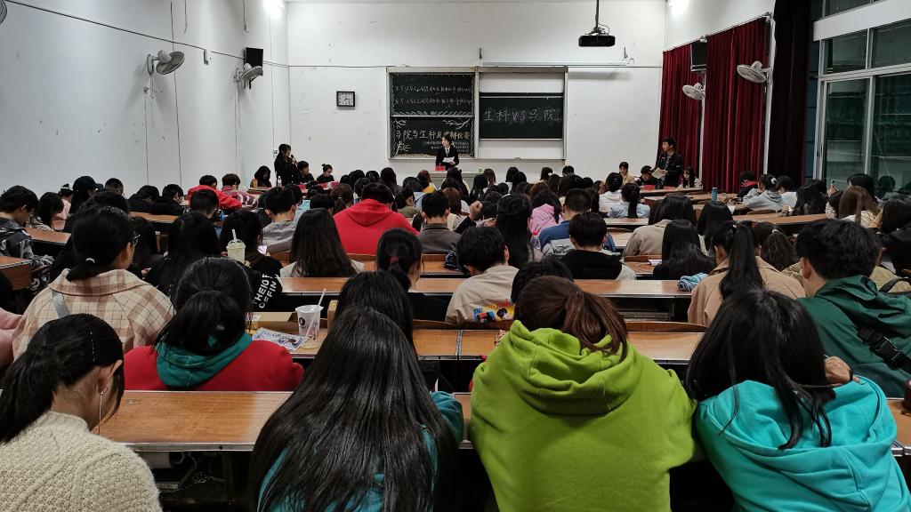 本网讯(见习通讯员 樊净 屈梦圆/文 谭媛/图)为丰富校园生活,展示学生风貌,同时加强两院交流。4月17晚七点,我院与马克思主义学院辩论队于4202教室举办友谊辩论赛。本次活动,特邀我院优秀辩手陈婕茹、刘亦锦以及马院优秀辩手肖杰、李清萍出席并担任评委。