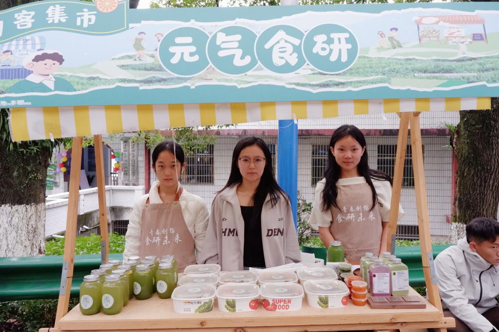 本次集市在轻松有序的氛围中,自然形成了三大特色交流区域——养生青年专享区、手作创意体验区与零食福利抢购区,为师生带来丰富多元的创意互动与购物体验。
