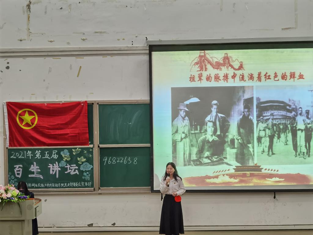 时间:2021-04-23 编辑:学生科 点击:本网讯(通讯员 李梦然/摄影 蓝雨璇 王芷依)4月22日晚,我院于修远楼5A207教室成功举办2021年第五届百生讲坛。翻译系主任王军、日语系老师段冰心、学生科老师陈小双莅临现场并担任评委