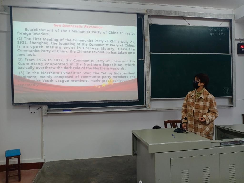时间:2022-03-21 编辑:学生科 点击:本网讯(通讯员 周海艳 摄影 刘婷 周淼淼)为深入学习邓小平时期军队建设思想,3月20日晚,外国语学院特开展翻转晚点名党史故事连连讲之积极防御,精兵之路。