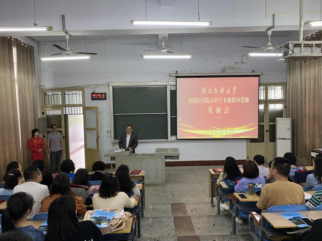 时间:2021-05-14 编辑:学生科 点击:5月13日,外国语学院在文汇楼6401举行了本科生专业导师见面会。本次会议由学生科科长粟登平主持,外国语学院领导班子成员、学生科辅导员、学院全体本科生专业导师及被指导学生参加了此次导师见面会。