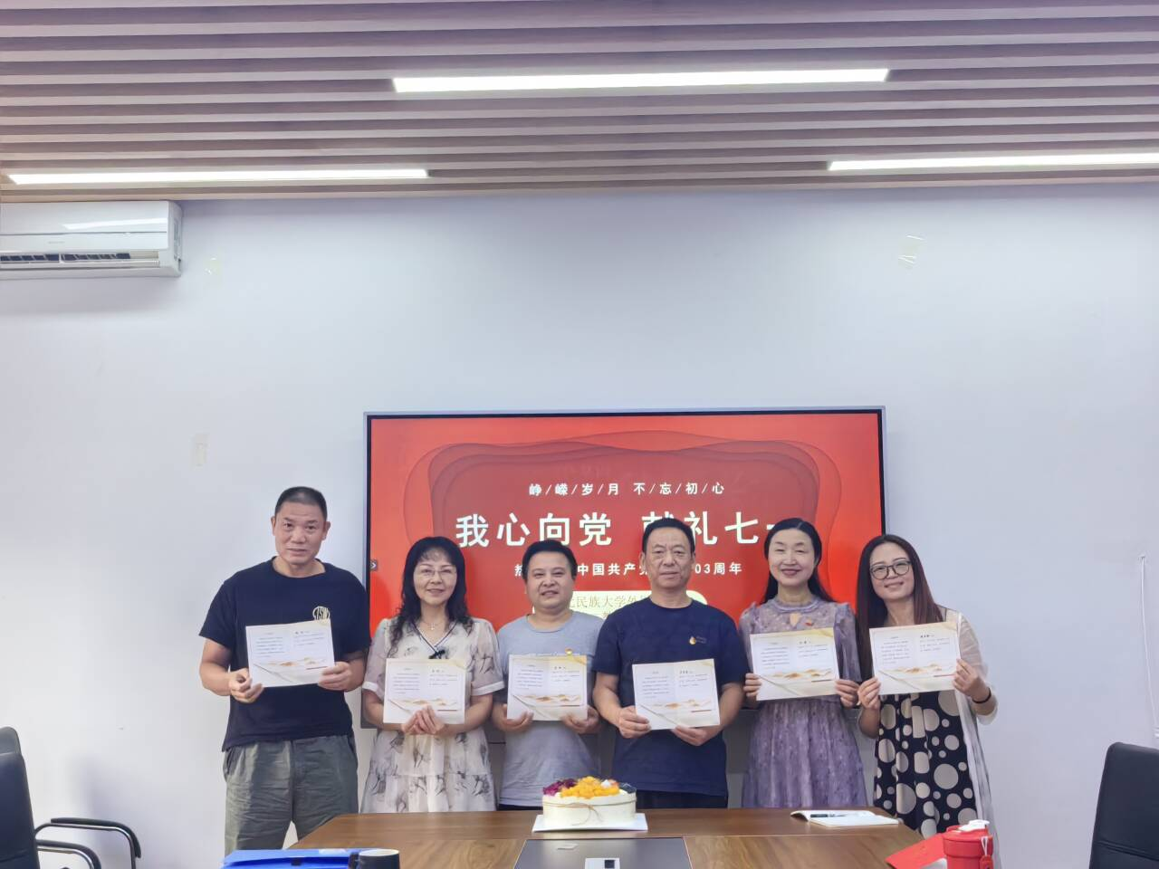 最后,陈海兵同志代表支部全体党员向过集体“政治生日”的五名同志送上“政治生日卡”和祝福,并对他们今后的学习、工作、生活寄予期望,希望他们能够时刻牢记党员身份,永葆共产党员先进本色。