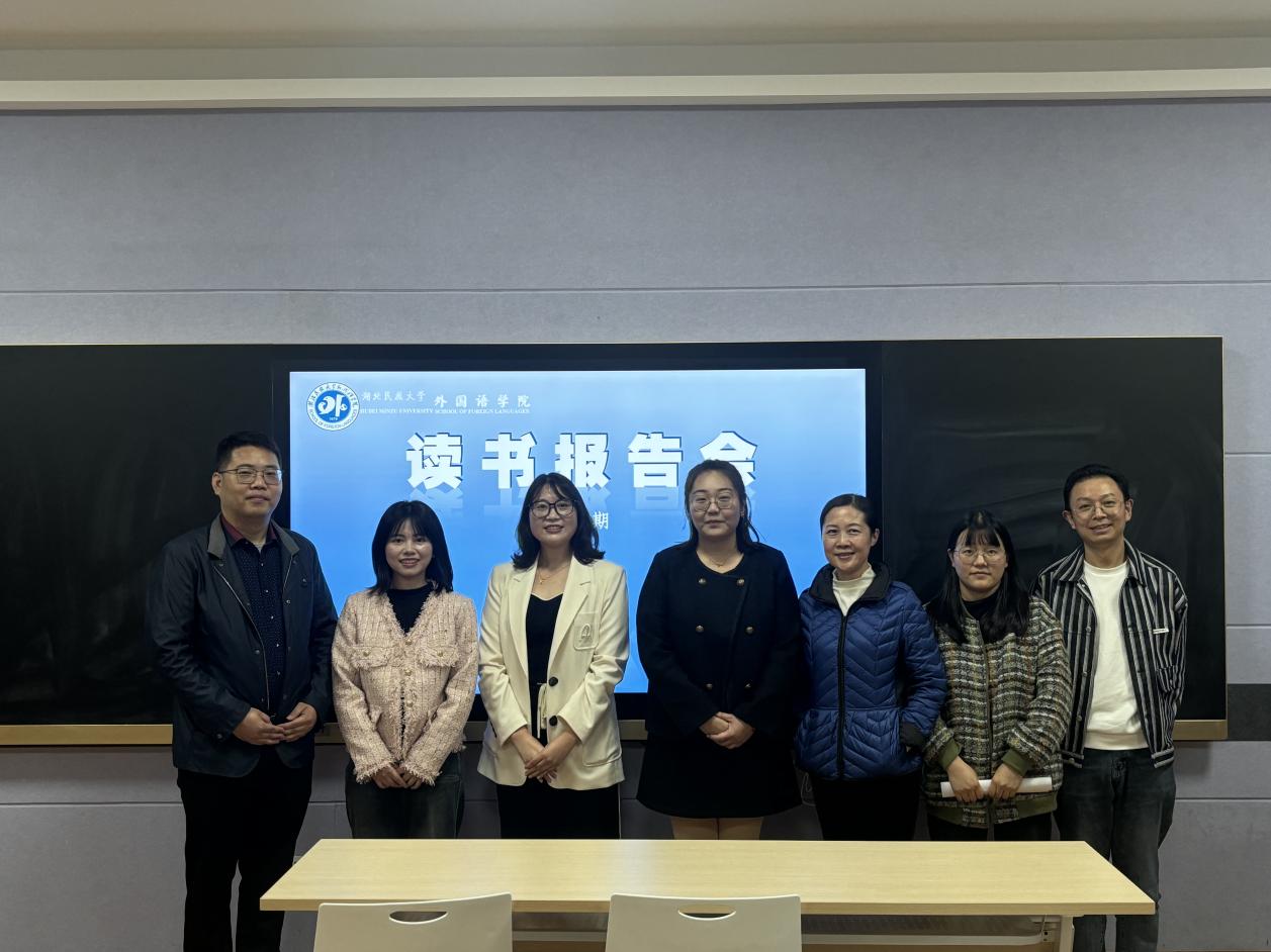 时间:2023-10-30 编辑:谭 点击:2023年10月27日晚,外国语学院第六期MTI研究生读书报告会在我院6B404多功能教室成功举行。外国语学院研究生导师代表刘孔喜博士、覃军博士和熊莉博士出席本次报告会,全体翻译专业硕士研究生参加本次读书报告会。