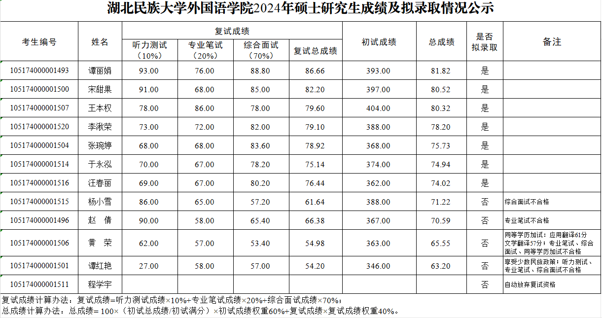 开云电竞官方网站入口外国语学院2024年硕士研究生成绩及拟录取情况公示