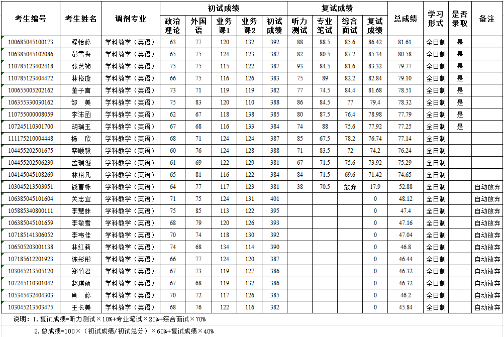 开云电竞官方网站入口外国语学院2025年硕士研究生调剂考生成绩及拟录取情况公示--学科教学(英语)