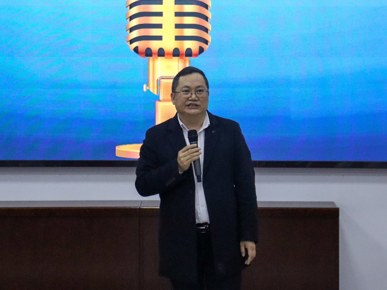 外国语学院院长骆贤凤教授、教评专家曾奇副教授、第一教工支部书记鄢春艳副教授、英语系主任覃军博士、副主任易红博士、商务英语系副主任李靖博士等受邀出席大赛并担任大赛评委。大赛伊始,外国语学院院长骆贤凤教授为大赛致辞。骆院长强调,师范生教学技能大赛是推动我院师范教育改革创新、强化师范类专业实践教学的有效途径,他希望参赛选手能够从比赛中提升教学技能,提高师范生综合素质。