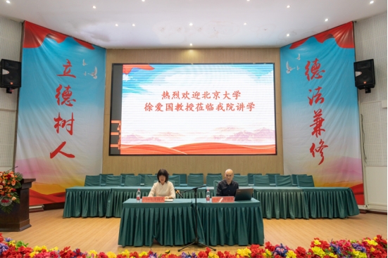 本网讯(通讯员 胡梦迪)9月21日,“诚信之法的法律史比较观察”学术讲座在学校图书馆学术报告厅成功举行,由北京大学法学院教授、博士生导师徐爱国主讲,法学院院长汪燕、法学院党总支书记张明波、部分教师及百余位本科生和研究生参加了本次讲座。讲座由法学院司马俊莲教授主持。