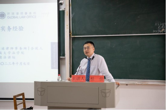 10月7日下午,湖北省知识产权培训(恩施)基地承办的“从跨国知识产权案件中学实务经验”讲座在法学院9A410教室举行。北京市环球律师事务所合伙人律师桂佳担任主讲人,我院副教授、硕士研究生导师杨信担任主持人,我院部分师生以及湖北新理念律师事务所主任田凤等律师参加了讲座。