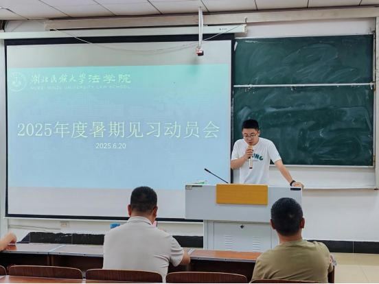 本网讯(记者 袁本怡 曾钰格/文 李佳萱/图)6月20日,我院于德智楼9B301举行23级见习学生2025年暑期实习动员会,我院党总支书记张明波,副院长李文革、蔡世鄂及雷国平、柳海松等带队老师出席动员会,动员会由法学系副主任舒登维主持。