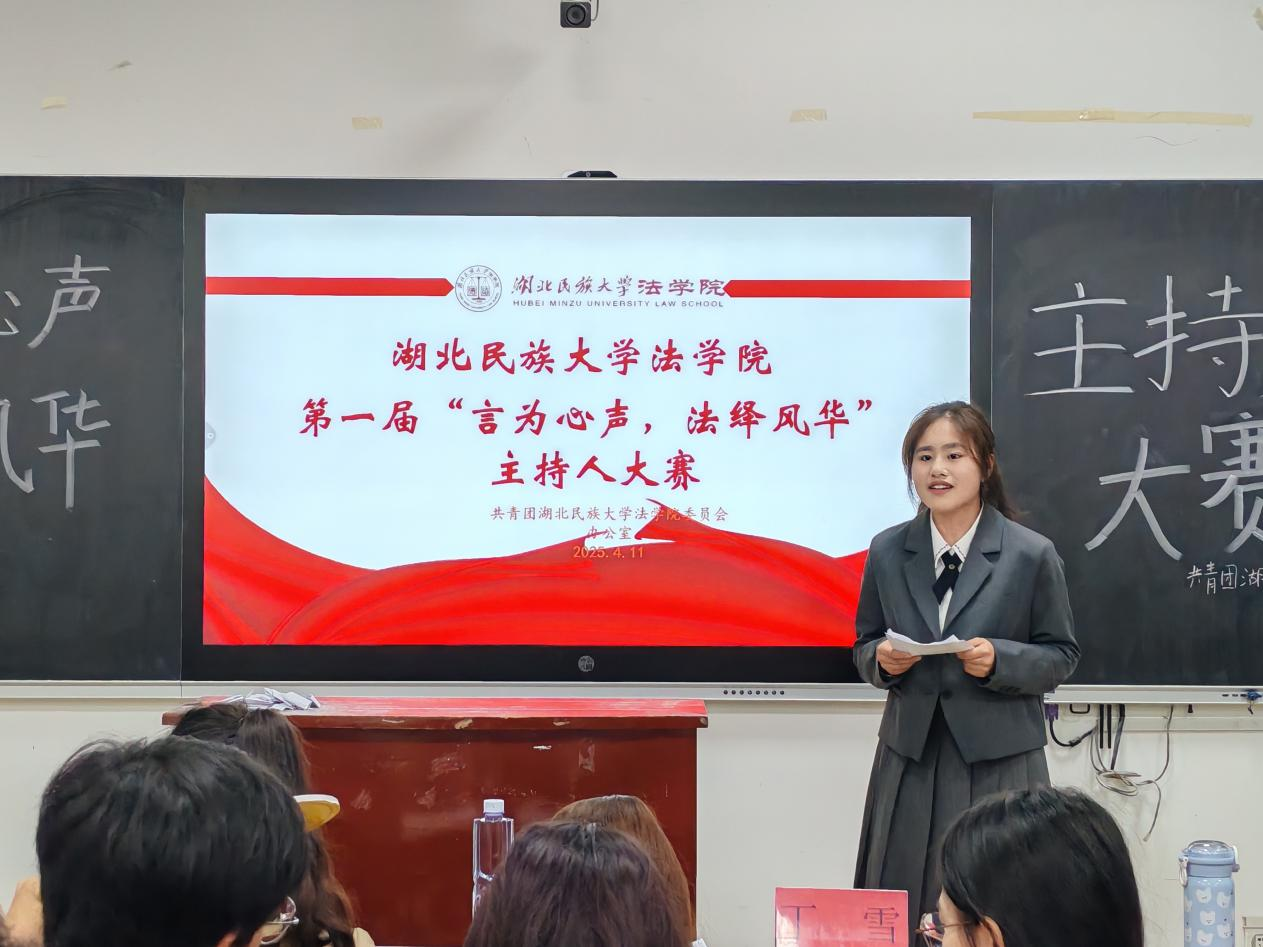 本网讯(记者 袁本怡 见习记者 曾钰格/文 实习记者 李佳萱/图)4月11日,以“言为心声,法绎风华”为主题的主持人大赛于我院9B306教室举行。法学院团委副书记丁雪同学、开云电竞官方网站入口讲解团团长崔钰婕同学、开云电竞官方网站入口广播台负责人田曼琦同学担任评委,我院多名本科生参赛。
