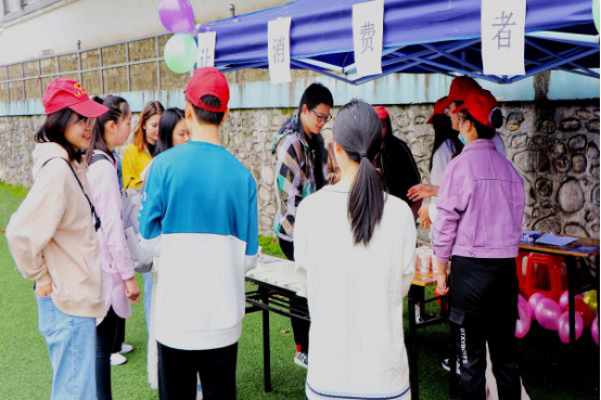 志愿者和参与学生积极配合疫情防控要求佩戴口罩,活动现场井然有序。志愿者邀请受访学生填写自身或身边所发生的消费侵权事件及其解决办法的调查问卷,让参与者了解消费侵权的危害并学会如何正确维护自身合法权利。现场还组织同学们加入“气球飞舞”、“投杯‘球’中上上签”、“拖杯大挑战”等趣味游戏,从而赢得游戏货币,在现场的摊位进行模拟交易。在模拟消费的过程中会呈现一系列欺诈消费者正当权益的交易行为,需要参与者进行分析,合理维权。