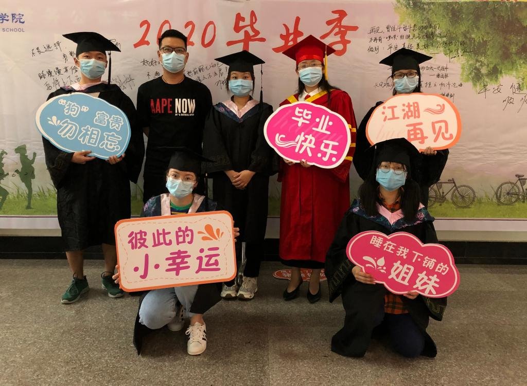学生分两批次返回校园,为校园增添了不少夏天的勃勃生机。我院为学生备好了文化纪念衫和纪念徽章,并提供行李邮寄代金券、学士服和防疫大礼包,学院大厅还为毕业生摆放着留言墙、鲜花、红毯、蛋糕和饮料小食等。