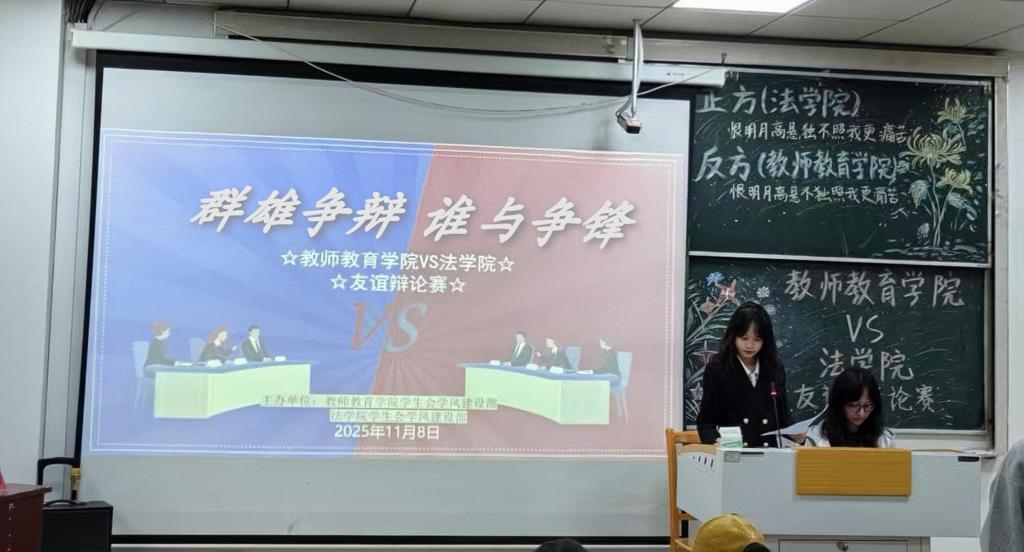 2025年11月8日,我院与教师教育学院于德智楼9B301教室举行“群雄争辩,谁与争锋”友谊辩论赛。