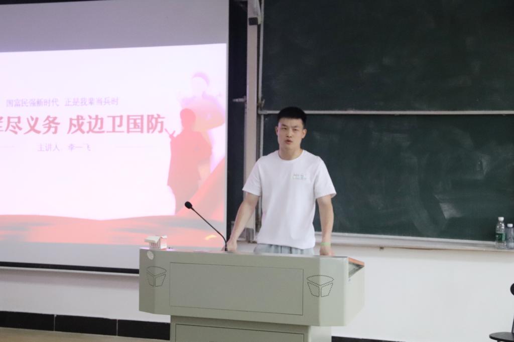 活动开始由李一飞同学讲解征兵政策,对服兵役义务、入伍待遇、入伍流程与时间节点做了仔细讲解。接着,杨晓芳同学介绍基本兵种与女兵训练日常。最后由李飞同学补充讲解男兵部队生活,分享入伍心路历程。通过观看视频与互动问答,现场氛围十分热烈。