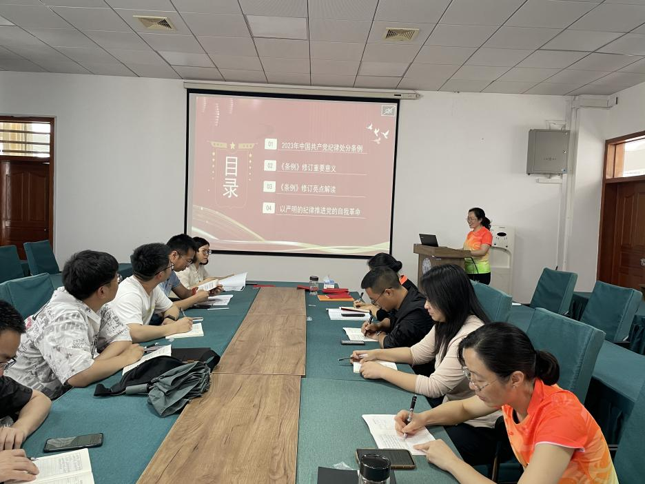支部书记邓浩以《〈中国共产党纪律处分条例〉解读》为题给全体党员讲党课。邓浩同志对《中国共产党纪律处分条例》的修订亮点进行了解读,并要求各位党员严格遵守《中国共产党纪律处分条例》的规定,履职尽责,恪守清正本分,筑牢廉洁防线,永葆共产党人的政治本色。