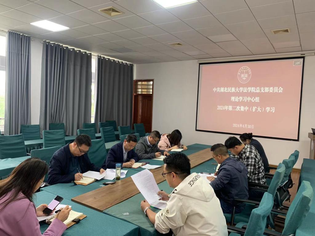 4月30日,法学院党总支理论学习中心组在9B314会议室开展2024年第二次集体(扩大)学习,学院党总支委员、科室负责人、支部书记参加学习,党总支书记张明波主持学习。
