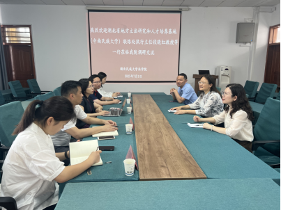 7月2日,湖北省地方立法研究和人才培养基地(中南民族大学)联络处执行主任段晓红教授、副主任陈蒙副教授、法学院涂少彬副教授、硕士研究生田甜、李默然一行赴我院调研。学校党委委员、研究生部(处)部(处)长、学科建设与学位管理办公室主任、立法基地负责人汪燕教授,法学院副院长李文革副教授、法学系主任冉艳辉教授参加,双方围绕“强化立法中评估推进民族自治地方立法质量提升”主题开展深入交流。