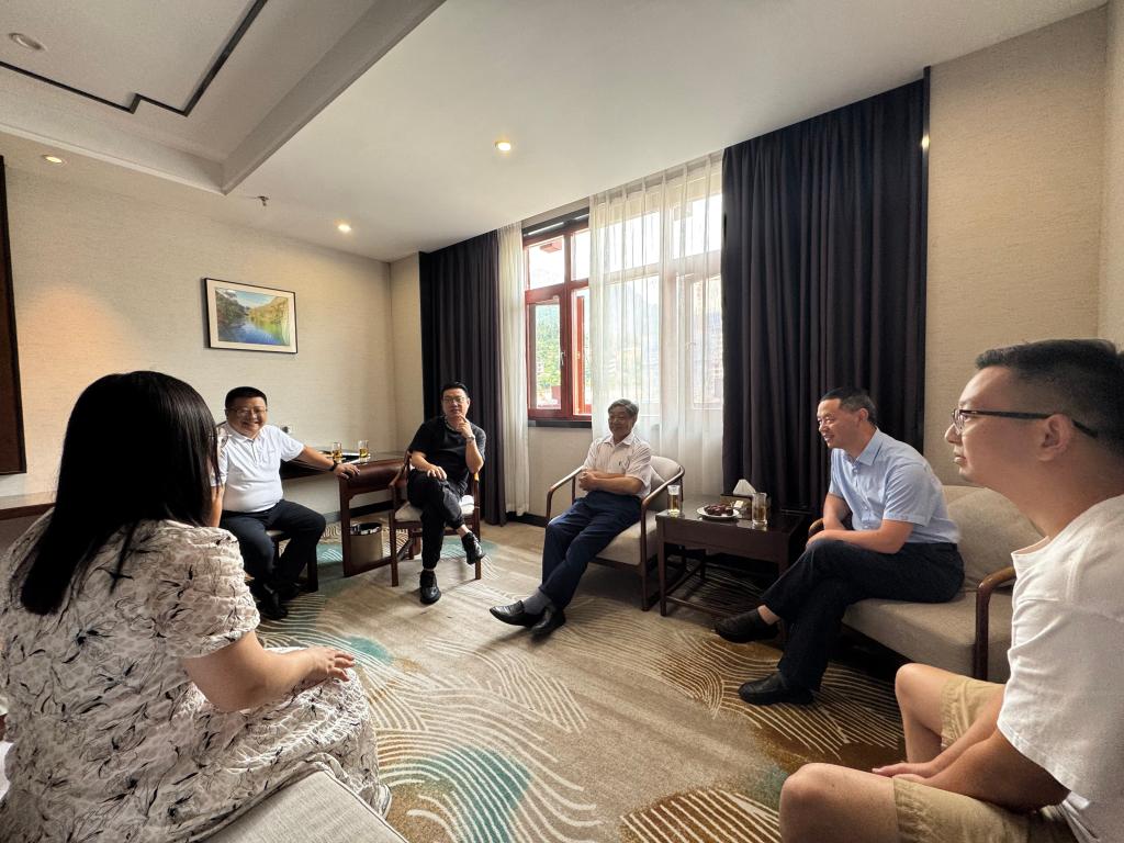 家访团队与全国模范司法所长易满成(右三)进行交流