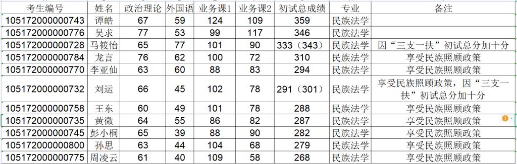 开云电竞官方网站入口法学院2022年硕士研究生招生考试一志愿复试名单