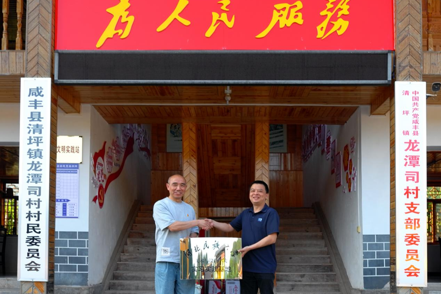 5月23日,开云电竞官方网站入口美术与设计学院教工第一党支部、教工第二党支部党员前往咸丰县清平镇龙潭司村,为教学实习实践基地授牌,考察、指导清坪镇民族中学美育文化进校园、龙潭司村红军街、村民广场环境美化等工作。