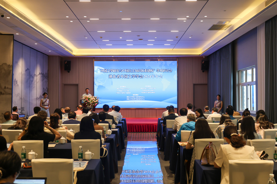 7月11日,“外国文学研究与中国自主知识体系建构”学术研讨会暨湖北省外国文学学会2024年年会在恩施召开。来自清华大学、四川大学、南京大学、上海交通大学、华中科技大学、华中师范大学、深圳大学、上海师范大学、上海外国语大学、南京师范大学等全国30余所高校及科研机构的100余名专家学者参加研讨会。学校党委常委、统战部长田景福出席开幕式并讲话。