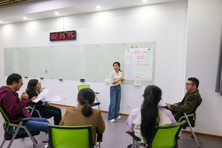 10月13日,学校教师发展中心在修远楼智慧教室管理中心开展“教师教学能力提升训练营之BOPPPS助力教创赛课堂实录”活动,训练营邀请武汉轻工业大学副教授覃晶晶及学校外国语学院洪佳丽两位老师担任主讲教师,文学与传媒学院吴龙胜、附属民大医院邓永安等10位教师参加。训练营由教学质量评价中心、教师发展中心谢坤武主持。