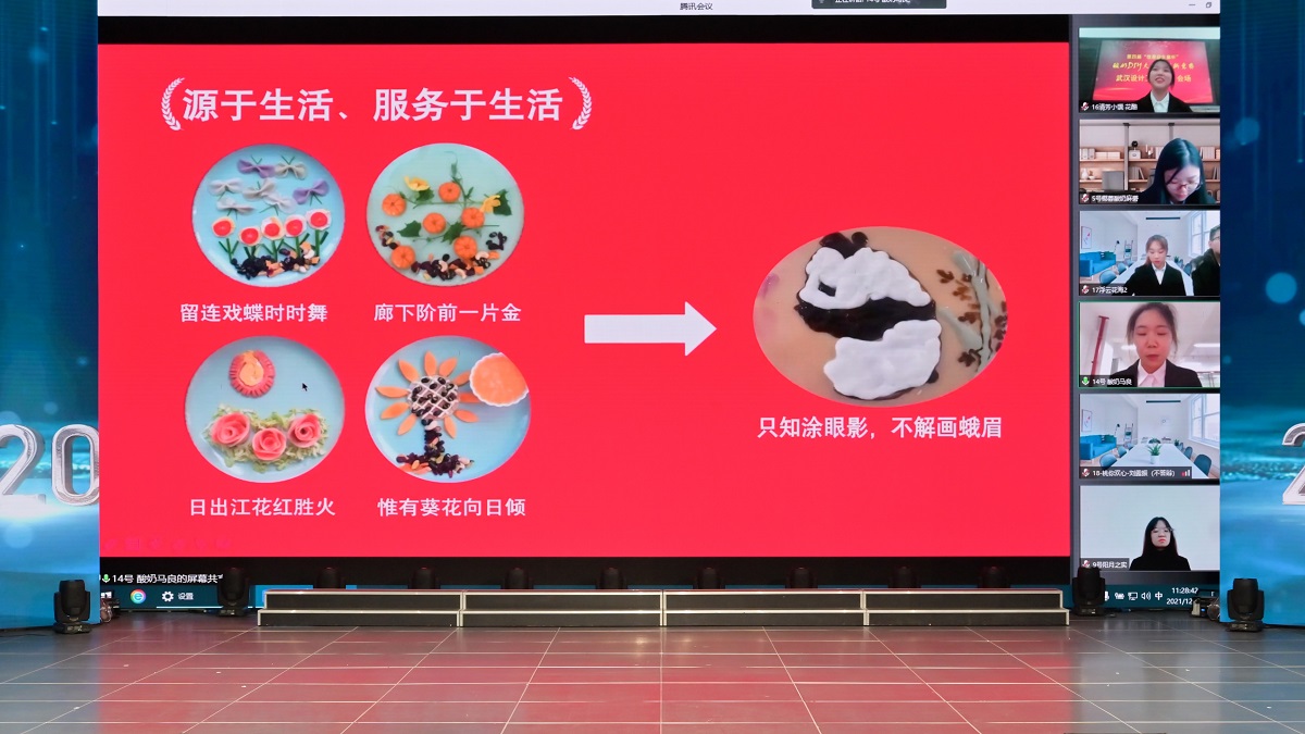 来自我校及华中农业大学、武汉轻工大学、武汉设计工程学院、湖北大学知行学院、中南民族大学等13所高校的22支团队同台比拼。最终,来自武汉设计工程学院的第17组作品“浮云花海”荣获一等奖,来自我校的第14组作品“酸奶马良趣涂鸦”荣获三等奖。