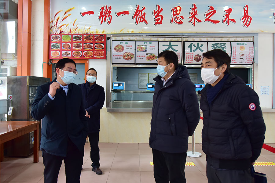 2月17日,省人社厅二级巡视员王玮率省疫情防控指挥部督导组到我校督导新学期开学疫情防控工作。学校党委副书记邓磊陪同检查。