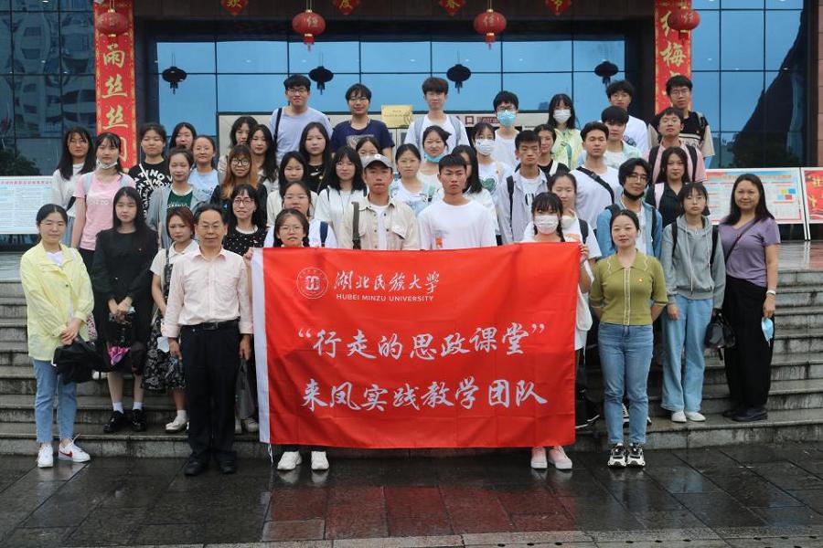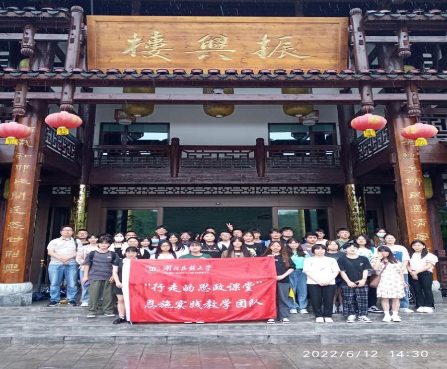 6月12日,“行走的思政课堂——读书明星走进红色文化基地”实践教学活动暨马克思主义学院思想政治理论课教学部党支部主题党日活动举行。此次实践教学活动以“走进红色文化基地,师生共续红色血脉”为主题,本学期在“品读经典读书明星”活动中评选出的读书明星参与,马克思主义学院《毛泽东思想和中国特色社会主义理论体系概论》课教研部和思想政治理论课教学部党支部教师带队分别前往鹤峰、来凤、咸丰和恩施进行实践教学。