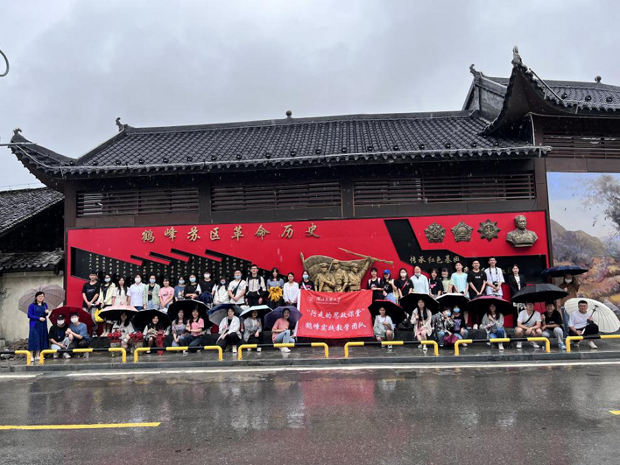 黄朝东、黄玉红、陈清华、崔应美、曾斌荣等教师带领鹤峰队,前往全国乡村振兴重点村——瓦屋村、萨哈茶厂和五里坪革命旧址参观。瓦屋村妇联主任为师生讲解了当地乡村振兴情况和发展经验。师生在萨哈茶厂参观了制茶工序,走进五里坪革命旧址看到了全国最早以土家族、苗族、白族为主体的革命力量在中国共产党领导下武装夺取政权、建立革命根据地的历史载体,聆听革命先烈的感人事迹,重温党的光辉历史,感悟革命前辈的精神。