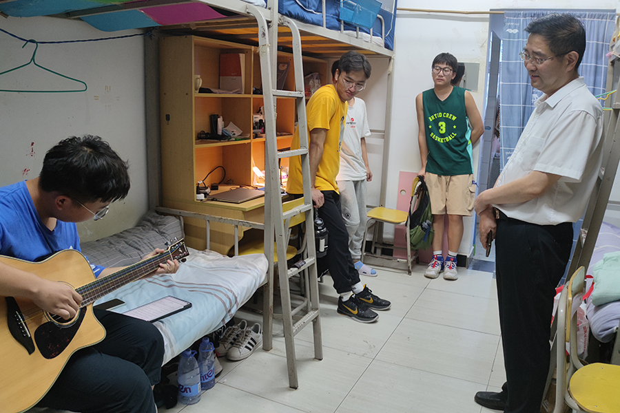 邓磊在走访中强调,学校相关部门要关心关爱假期留校学生的生活起居问题,为同学们营造良好的学习生活环境,同时要加强宿舍卫生督促与安全隐患排查,引导学生文明素养的习得养成。