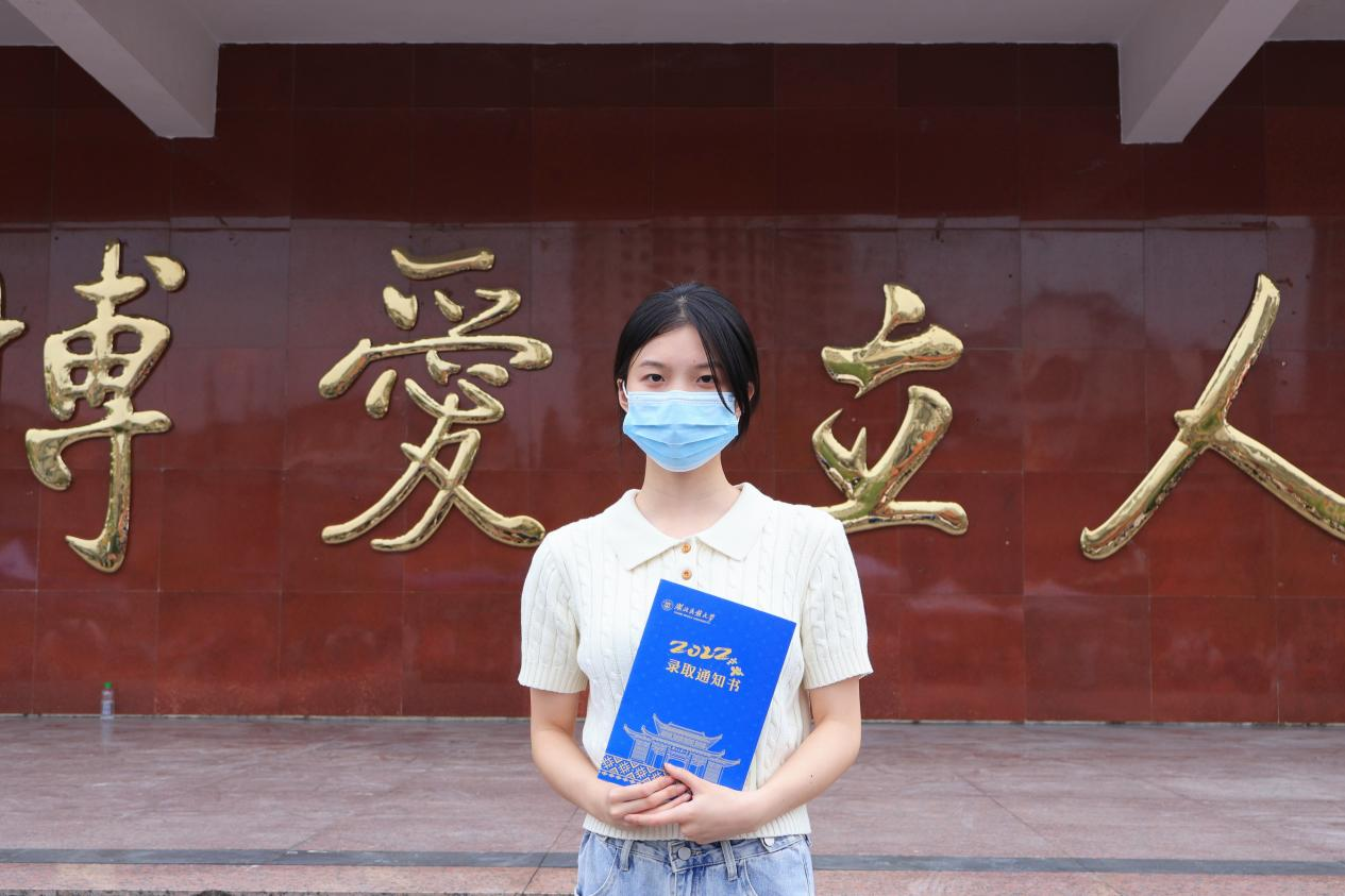 郭馨忆从新疆来到恩施,虽千里迢迢,但满怀期待。她期待在民大遇到好朋友,和新朋友分享她和家乡的故事。问到她对自己进入校园之后的规划,她说:“学好专业课程是我的近期目标,课余时多参加校园活动,但无论做什么,我都希望自己能脚踏实地、勤奋努力,更进一步。”