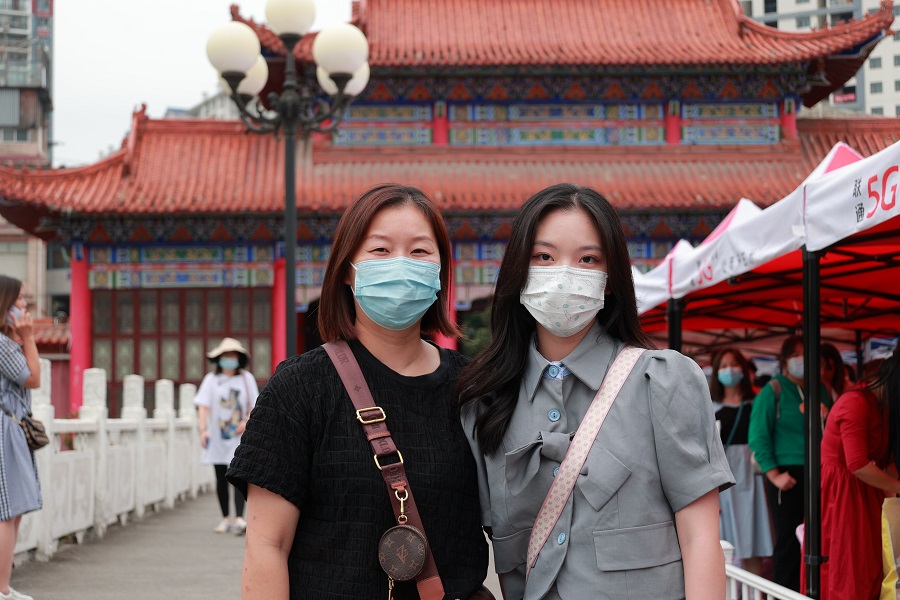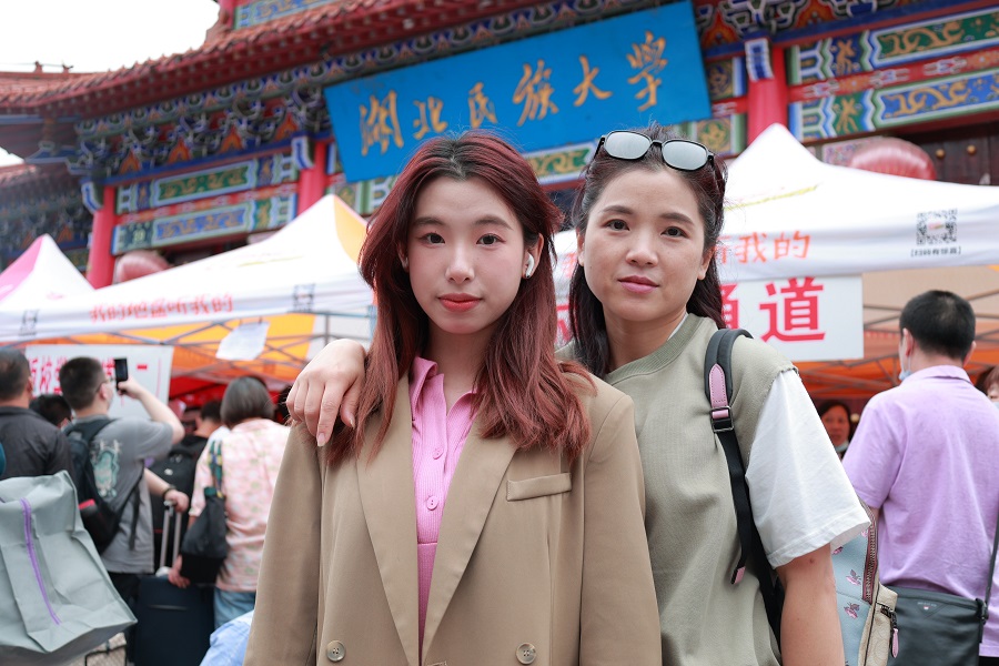 音乐舞蹈学院新生谭雅心(左)与母亲在西门合照