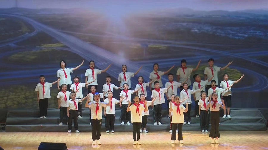 “红色筑梦”团队成员与孩子一同唱红歌