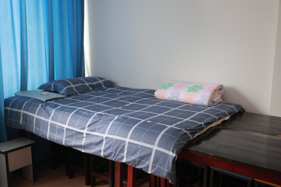 “疫情就是命令,现场就是战场。”在临时管控前几个小时,教师教育学院副院长、心理健康教育中心主任黄力不是赶紧回家,而是从家里带上10岁的女儿一道拉着行李箱,抱着被褥赶回学校。丈夫是驻村尖刀班班长,长期驻扎在对口帮扶的村子里,“这段时间我们娘儿俩就在办公室安营扎寨了。”黄力在办公室打好地铺,安顿好女儿,笑着告诉同事们。