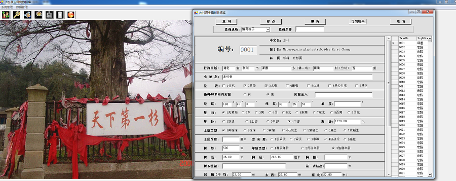 生物多样性团队为星斗山国家级自然保护区开发的水杉原生母树数据库