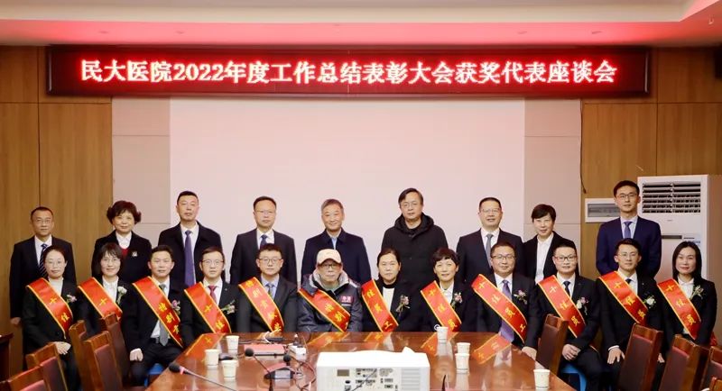表彰会上,附属民大医院对获得2022年度新技术新业务、重大疾病救治贡献奖、先进集体、十佳员工、优秀教研室、学科建设成果奖、特别贡献奖等9个奖项的集体和个人分别进行了表彰。医院党委副书记邹莉主持表彰仪式。