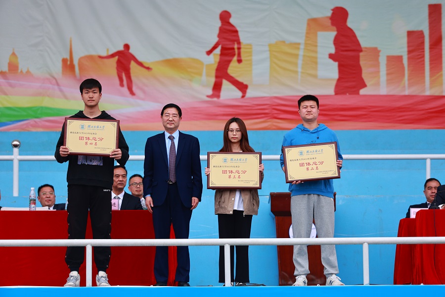 学校党委委员、党委宣传部常务副部长罗翔宇宣布本届运动会宣传工作奖获奖名单。文学与传媒学院荣获宣传工作一等奖,法学院、外国语学院、数学与统计学院获得二等奖,智能科学与工程学院、经济与管理学院、马克思主义学院、生物与食品工程学院、体育学院获得三等奖。