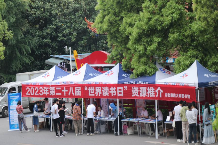 图书馆馆长罗世家宣布2023年度我校全民阅读活动正式开始。随后,“书香民大,阅读悦美”签名、户外读书等系列活动在图书馆、大学生广场等地举行。户外读书活动分为“这几个字不能说”“你画我猜”“书名与作者”“猜书名”“‘读书愿望’展板”“看图说话”等7个环节。现场设置展棚若干,广大学生积极参与其中。