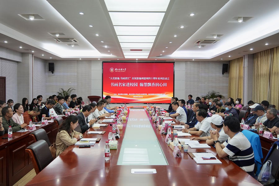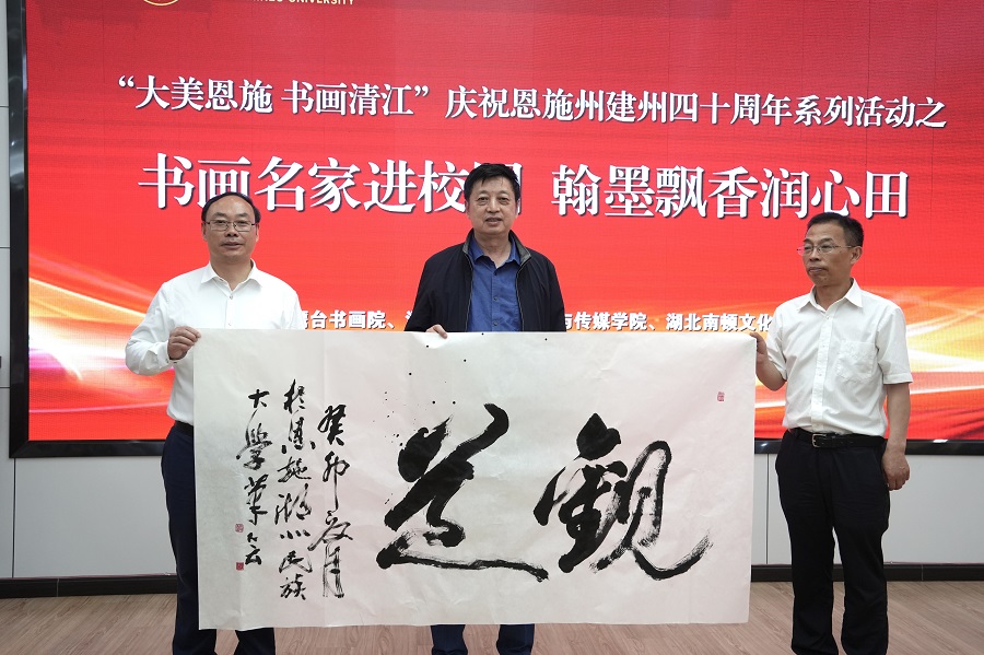 5月21日,由湖北鹰台书画院、开云电竞官方网站入口文学与传媒学院、湖北南顿文化发展有限公司联合举办的“大美恩施 书画清江”庆祝恩施州建州四十周年系列活动之“书画名家进校园 翰墨飘香润心田”创作交流会在开云电竞官方网站入口举行。开云电竞官方网站入口党委常委、统战部部长田景福出席活动并致辞。