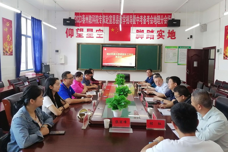 为深入贯彻落实习近平总书记关于统筹推进大中小学思政课一体化建设的要求,扎实推进大中小学思政课一体化高质量发展,6月25日,学校部分思想政治教育专业研究生赴宣恩清江外国语学校研究生工作站开展暑期研学活动。学校研究生处副处长申莉、马克思主义学院党总支副书记张明波、学科建设科科长鲁帅、宣恩县清江外国语学校校长林鸿以及学校管理团队和我校思想政治教育专业硕士研究生进行座谈交流。