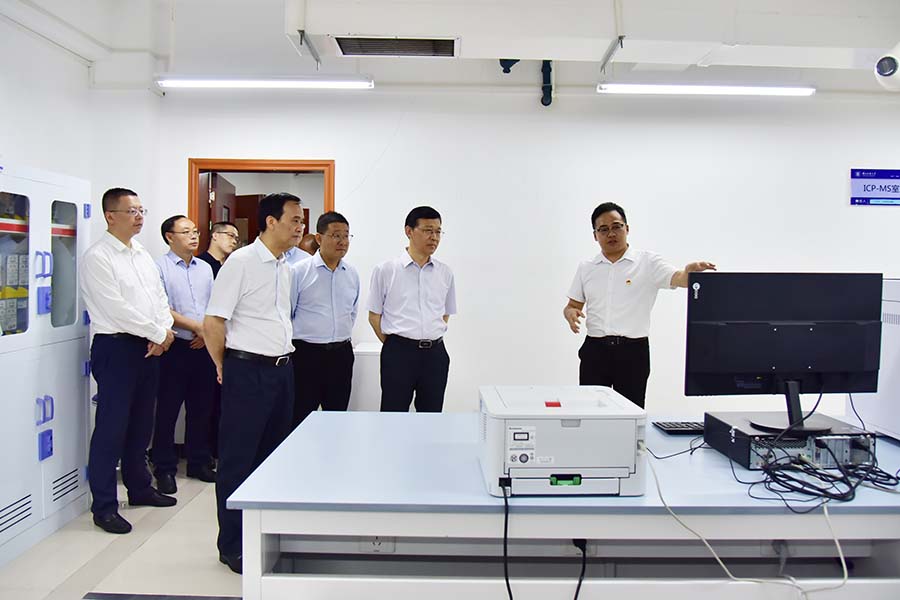 冯艳飞一行现场观摩了固体样品中硒与镉元素快速检测过程,并听取了其设备研制进展及学校科研有关工作的汇报。
