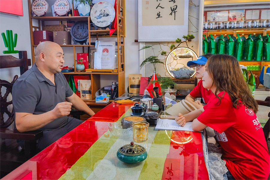在人头山村,调研队在割漆匠人黄太愚的带领下参观漆树种植基地并学习割漆工艺。“在割漆时力度要适当,根据树皮的厚度决定力气的大小,刀要稳,同时割一个口子,一周内可割一次。” 黄太愚说。随着时代的发展,坝漆不断拓宽其功能,不仅应用在工艺美术、家具装饰领域,还在航空、乐器、建筑等领域发挥重要作用。黄太愚表示,希望更多青年人能够加入进来,传承、保护、发展、创新坝漆。